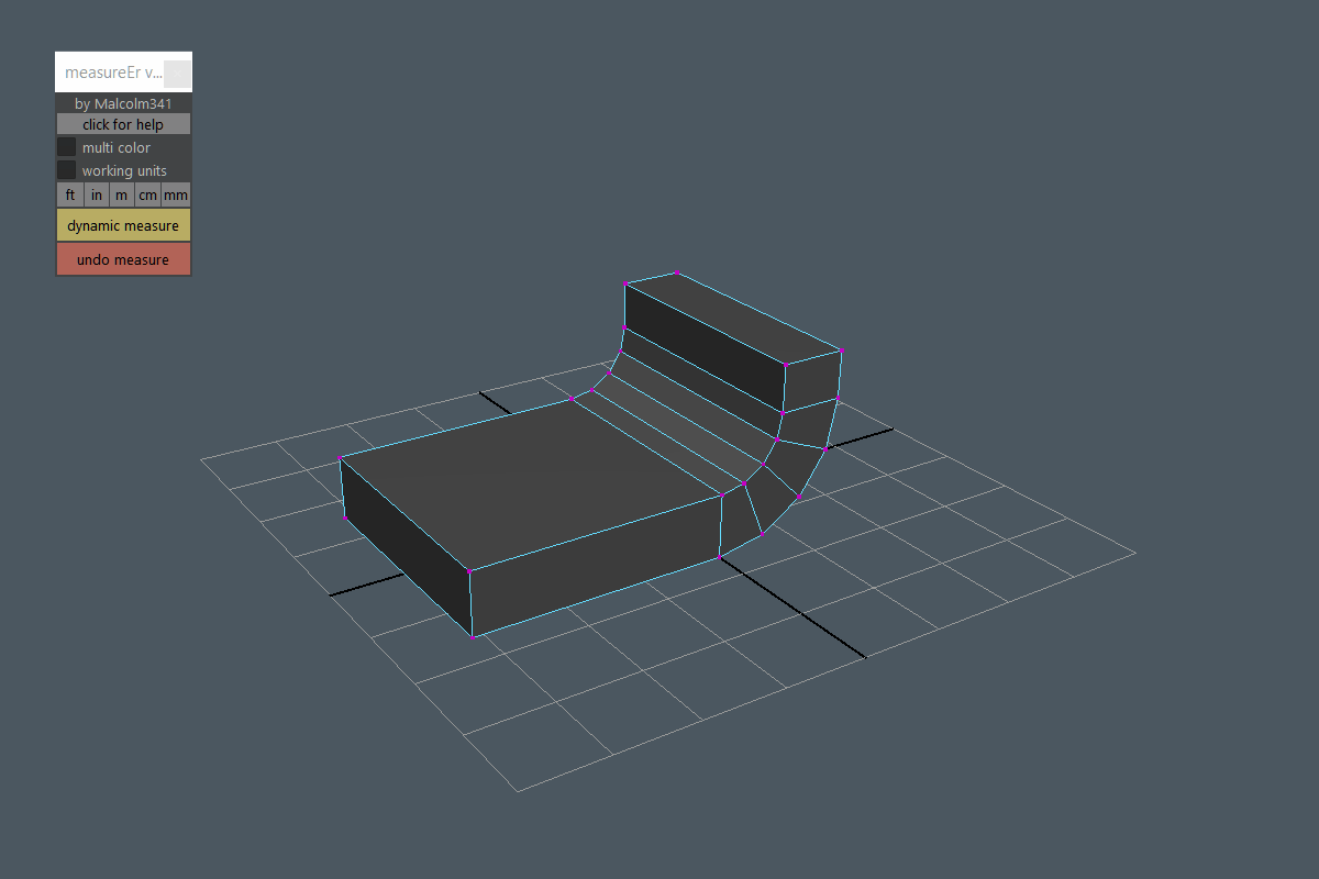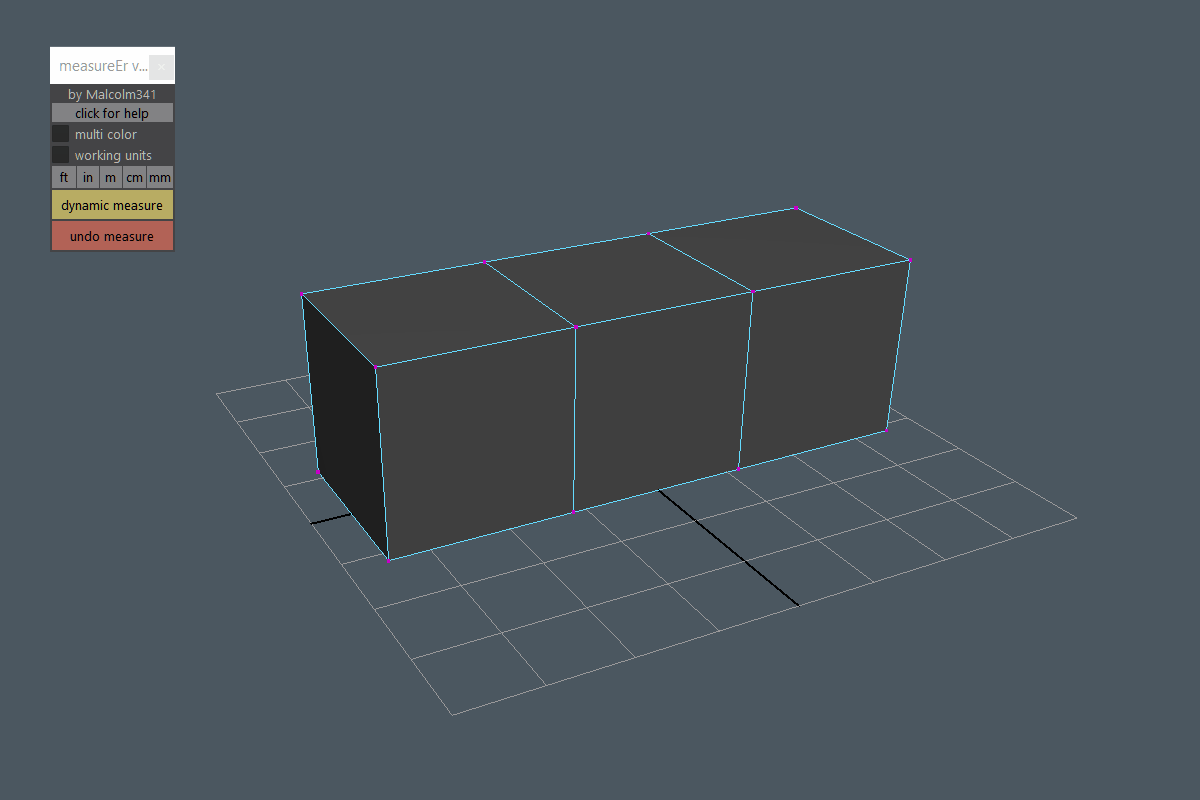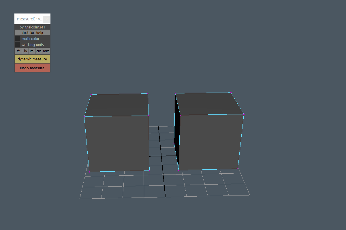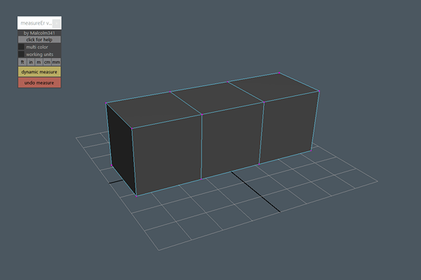 Creates a measurement node between two or more vertices with a single click. Measurements update automatically if you move the meshes or verts around after creation.