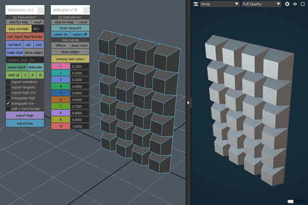 Speeds up exporting meshes for baking in Marmoset Toolbag or Substance Painter with name matching, material ids, bevel shader width, normal editing, and export settings all in one place.